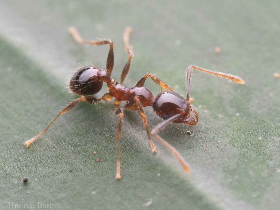 The most common ant on kitchen counters in Hawai‘i is probably the African Big-headed Ant. In his 1915 book “Natural History of Hawaii”, W. A. Bryan noted that this ant “invades every nook and corner of the house and considers the food safe and ice-box as institutions especially provided for its comfort and convenience”. This ant has been tramping around the world as a stowaway pretty much since the first ship sailed across an ocean. It was spreading through the Hawaiian Islands by the middle of the 19th Century, and in the 1890s it was noted with alarm that native insects were being exterminated in droves as this ant spread through native lowland forests. Along with its less common but very similar cousin, Pheidole fervens, Big-headed Ants are nearly ubiquitous on all islands from sea level to around 500 meters elevation, and they continue to be commonly found up to twice that elevation or even slightly higher, although the higher one goes the colder temperatures prevent it from thriving. Above about 1250 meters it tends to disappear altogether. Today there is widespread consensus that African Big-headed Ants are one the most invasive ant pests the world has ever known.
