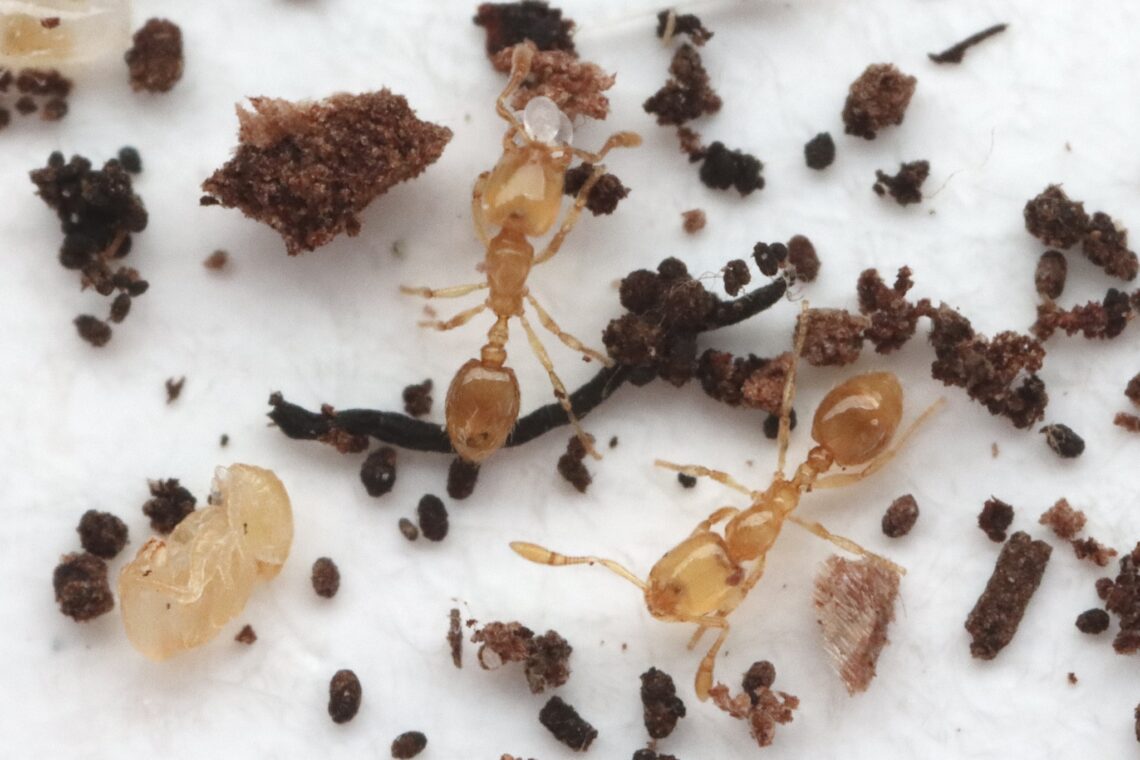 This is a tiny, slow-moving, pale yellow ant. It qualifies as an “LFA lookalike” because of its similarity to Little Fire Ants, at least when viewed with the naked eye.